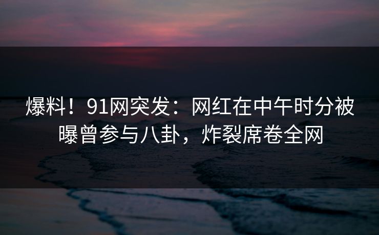 近日,91网突发一条令人震惊的爆料,一位曾经在网络上声名显赫的网红被曝出曾参与一桩众人未知的秘闻事件。这一消息一经发布,立刻引发了社交媒体和各大新闻平台的热议,短短数小时内,各种话题就成为了网上讨论的焦点。